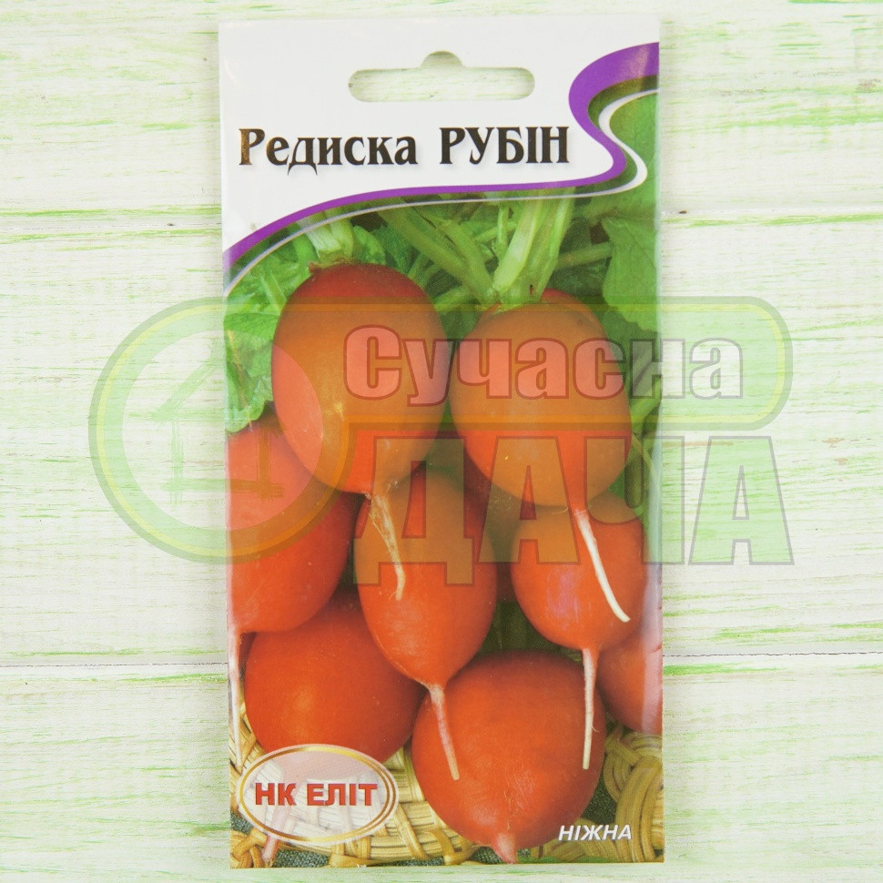 Насіння «НК Еліт» редиски «Рубін» можна придбати на сайті semena.biz.ua. Якісне насіння, замовлене у нас, відрізняється чудовою схожістю, а сходи – швидким зростанням. Редиска рання, включаючи її зелене листя, використовується в літніх салатах, а також при приготуванні окрошки.